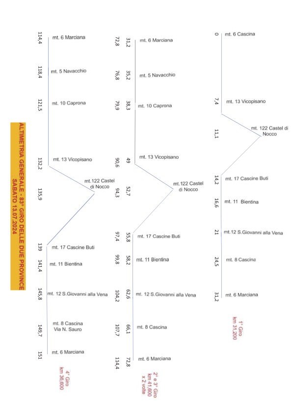 Il percorso di gara interessa tratti di strade provinciali e comunali ricadenti nel territorio dei Comuni di Cascina, Vicopisano, Buti, Bientina e Calcinaia (in allegato la tabella di marcia).