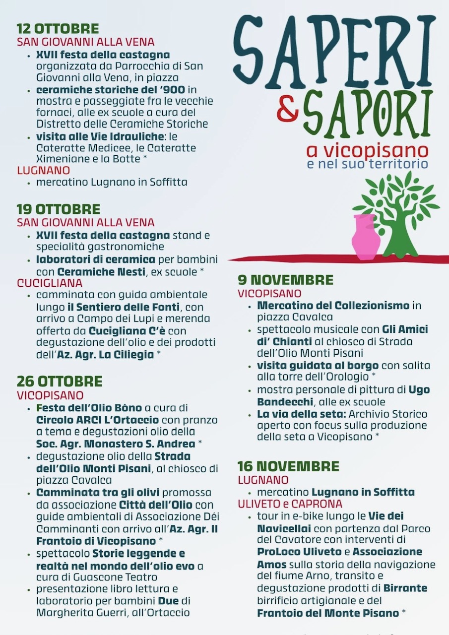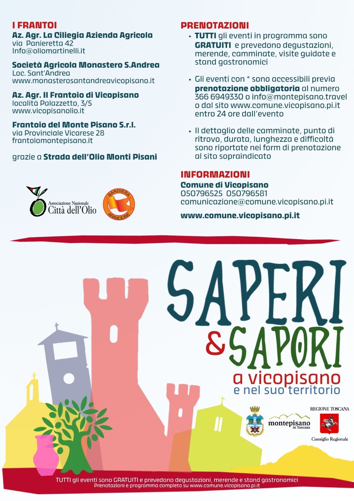- Prosegue la rassegna "Saperi e Sapori", iniziata lo scorso fine settimana, organizzata dall'Amministrazione, in collaborazione con Montepisano in Toscana e con il contributo del Consiglio Regionale, con tre appuntamenti... per tutti i gusti!