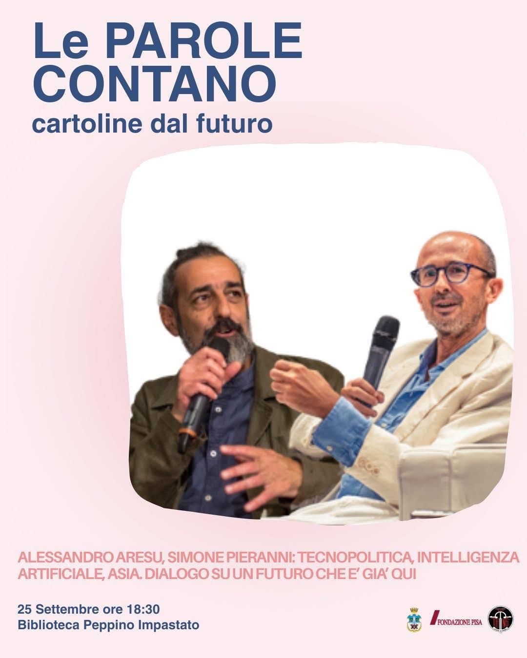Festival Le Parole Contano - Cartoline dal Futuro, 25 settembre, alle 18:30 in Biblioteca Peppino Impastato a Vicopisano si parla di