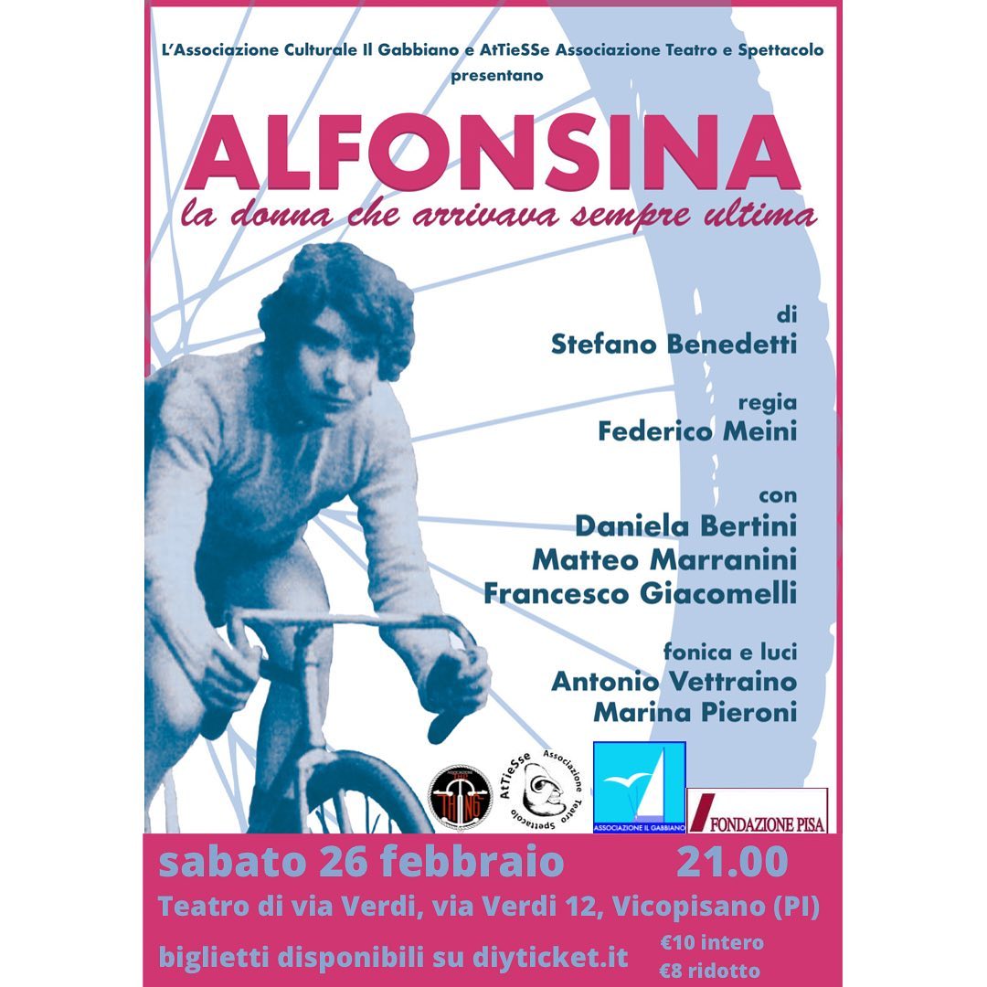 L'associazione culturale Il Gabbiano e AtTieSSe-Associazione Teatro e Spettacolo presentano, al Teatro di Via Verdi di Vicopisano, "Alfonsina, la donna che arrivava sempre ultima".