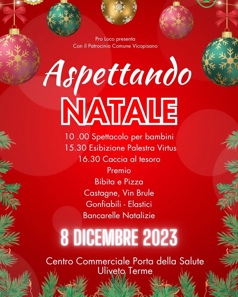 La Pro Loco di Uliveto ha organizzato, per venerdì 8 dicembre a partire dalle 10:00, una giornata per aspettare il Natale al Centro Commerciale La Porta di Uliveto Terme.