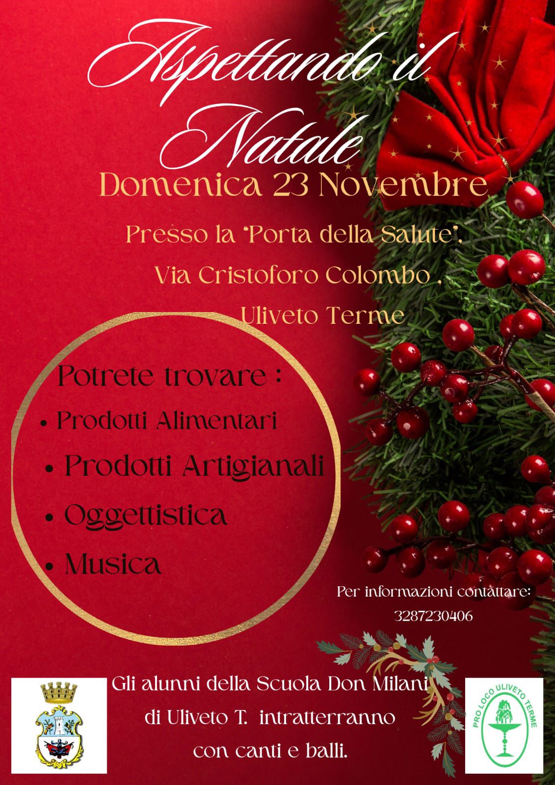 L’Amministrazione Comunale invita la cittadinanza a partecipare al mercatino natalizio organizzato alla Porta della Salute, in Via Cristoforo Colombo, a Uliveto Terme.