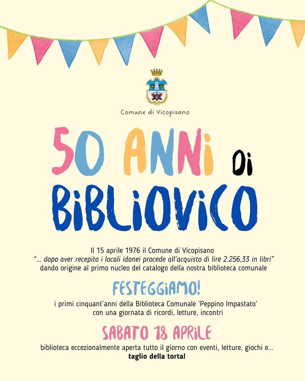 Vi aspettiamo sabato 18 aprile alla Biblioteca Comunale Peppino Impastato, in via Lante 50, per festeggiare insieme i primi 50 anni della nostra Bibliovico.