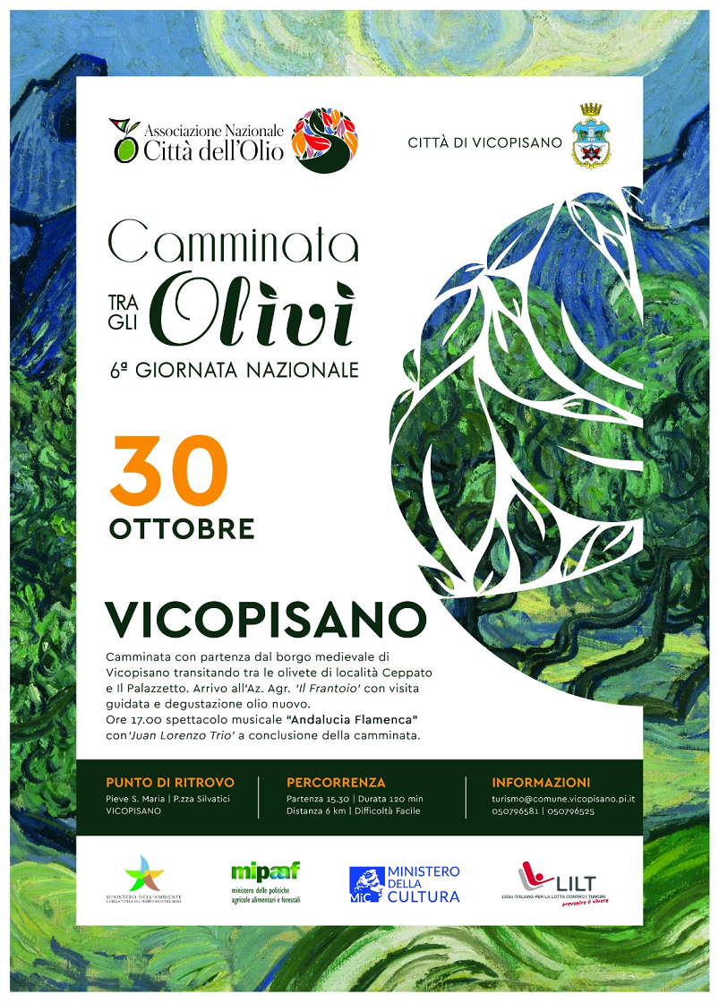 Il 30 ottobre torna l'appuntamento con la 6a giornata nazionale della Camminata tra gli Olivi, essendo Vicopisano Città dell'Olio.