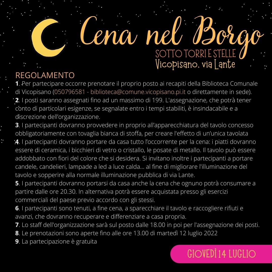 Cena nel Borgo sotto Torri e Stelle, in Via Lante, il 14 luglio