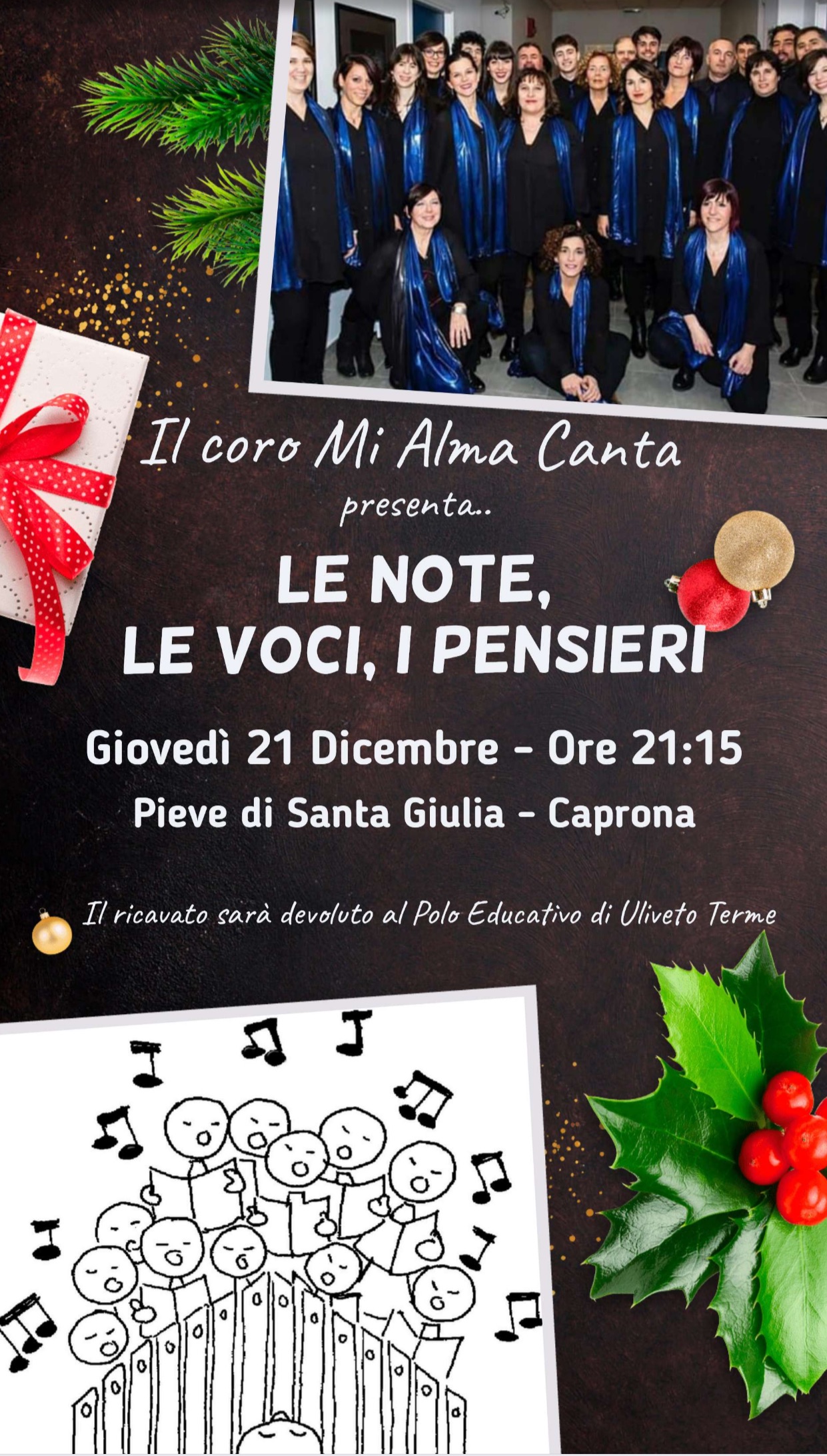 Concerto di Natale del Coro Mi Alma Canta, "Le note, le voci, i pensieri", giovedì 21 dicembre alle 21:15 nella Pieve di Santa Giulia di Caprona.