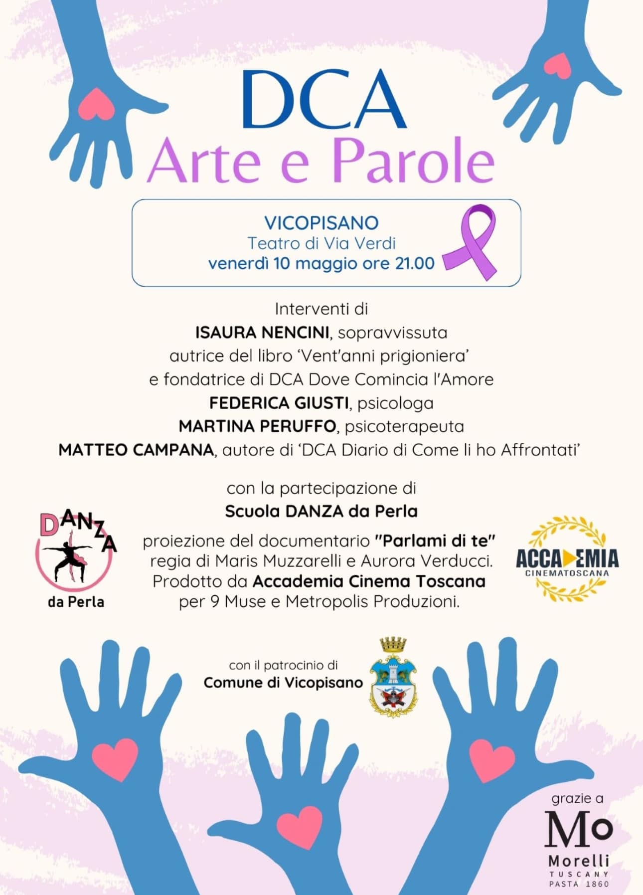 Interventi di Isaura Nencini, sopravvissuta, autrice del libro "Vent'anni prigioniera" e fondatrice di "DCA Dove comincia l'amore", Federica Giusti, psicologa, Martina Peruffo, psicoterapeuta e Matteo Campana, autore di "DCA Diario di come li ho affrontati".