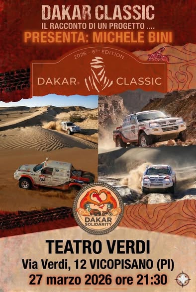 Dopo l’esperienza vissuta alla Rally Dakar 2026, Michele Bini, di San Giovanni alla Vena, sarà protagonista a Vicopisano di una serata speciale per ripercorrere un’avventura straordinaria, nata da una grande passione, messa a servizio degli altri, e diventata, passo dopo passo, un progetto di comunità e solidarietà.