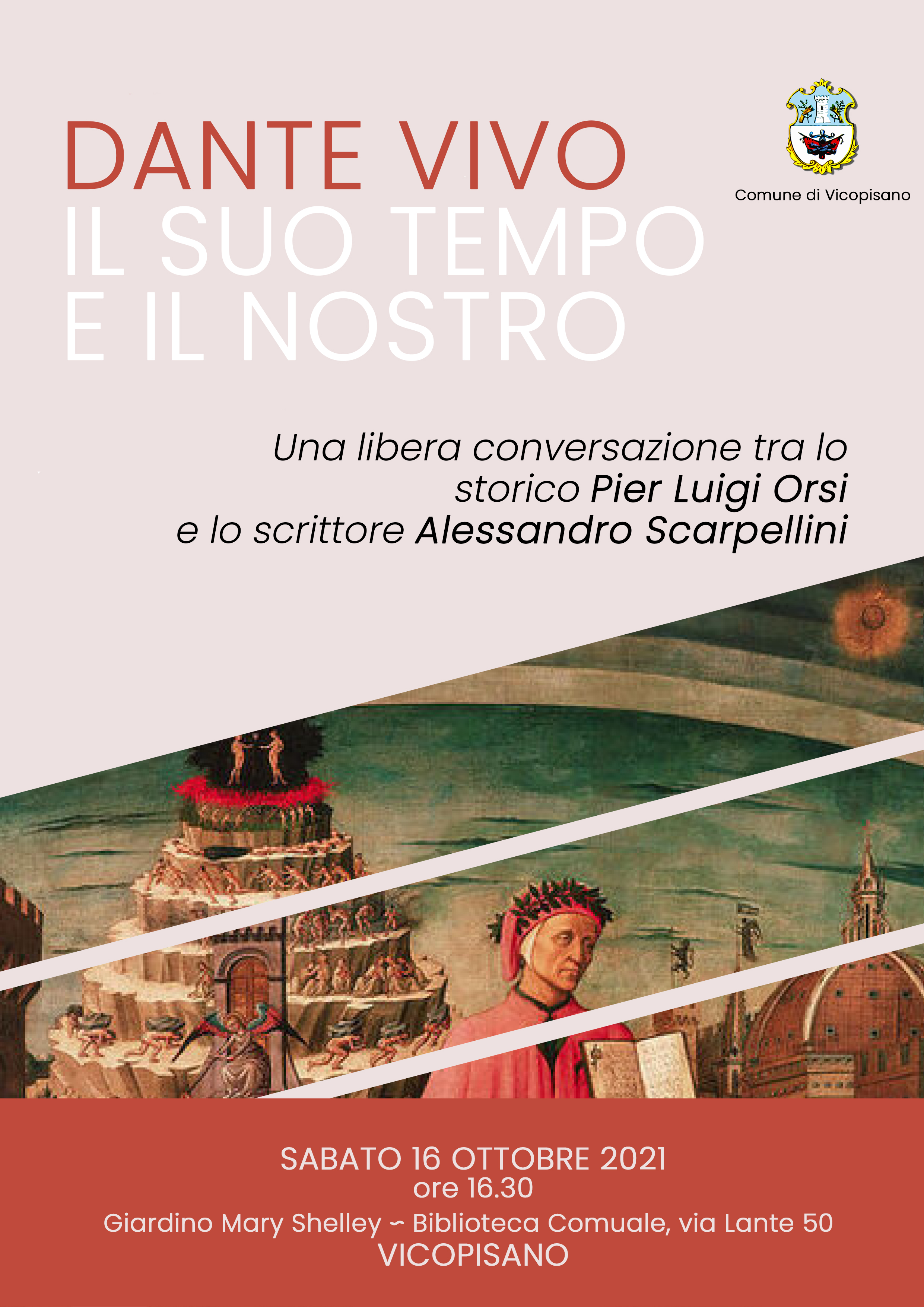 Sabato 16 ottobre, alle 16:30, nel Giardino Shelley della Biblioteca Peppino Impastato di Vicopisano, libera conversazione tra lo storico Pier Luigi Orsi e lo scrittore Alessandro Scarpellini.