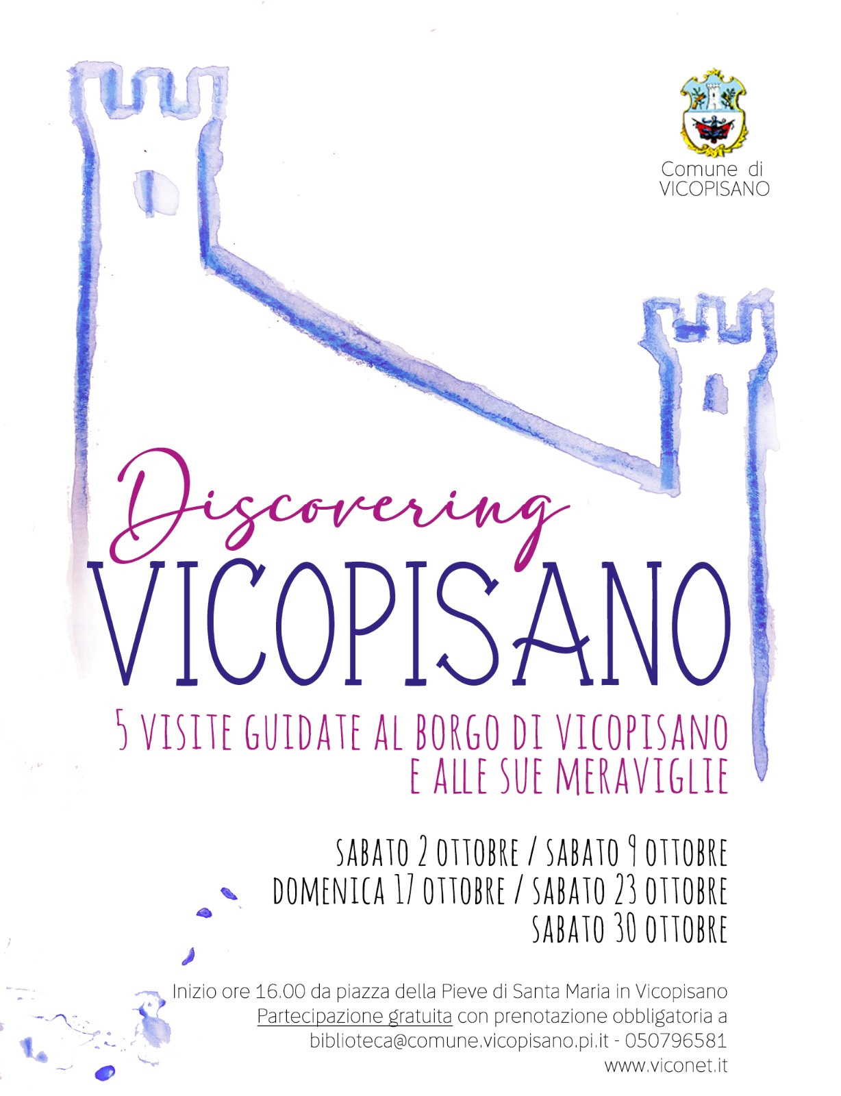 Discovering Vicopisano, da sabato 2 ottobre, alle 16:00, 5 visite guidate gratuite al borgo di Vicopisano e alle sue meraviglie, prenotazione obbligatoria. Alla (ri)scoperta di Vicopisano e di tutte le sue bellezze storiche, artistiche, architettoniche e naturali.