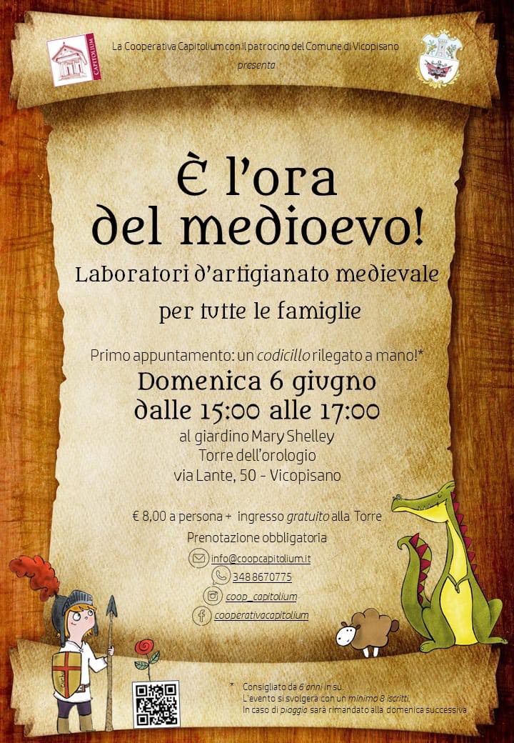 Capitolium Società Cooperativa propone per Domenica 6 giugno 2021 un laboratorio d’artigianato medievale per tutte le famiglie nel giardino Mary Shelley ai piedi della Torre dell'Orologio.