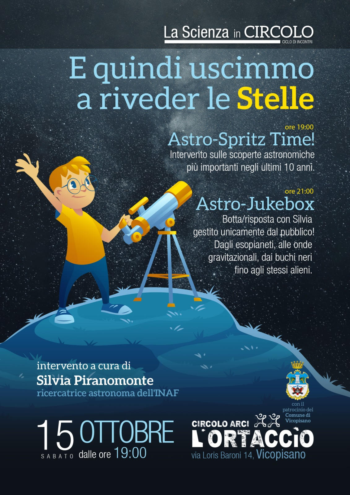 Riprendono gli appuntamenti della rassegna "La Scienza in Circolo", al Circolo ARCI L'Ortaccio, sabato 15 ottobre alle 19:00. "E quindi uscimmo a riveder le Stelle", durante il prossimo incontro si tratterà di astrofisica.