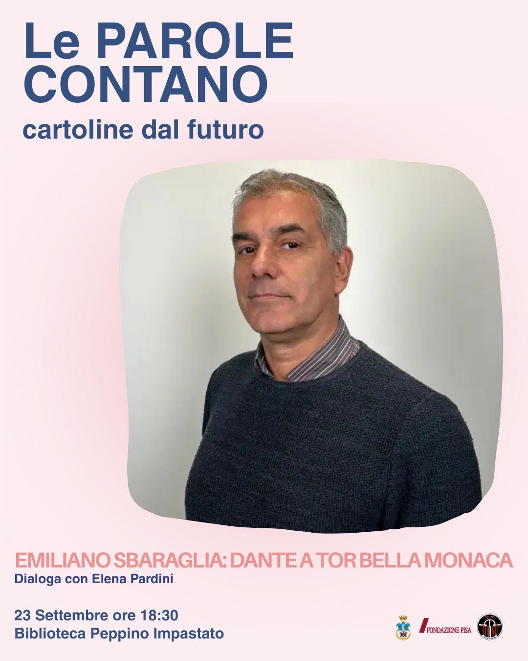 Festival Le Parole Contano – Cartoline dal futuro, il 23 settembre 2025, alle 18:30, nella Biblioteca Peppino Impastato a Vicopisano, Emiliano Sbaraglia presenta “Leggere Dante a Tor Bella Monaca” (Edizioni E/O).