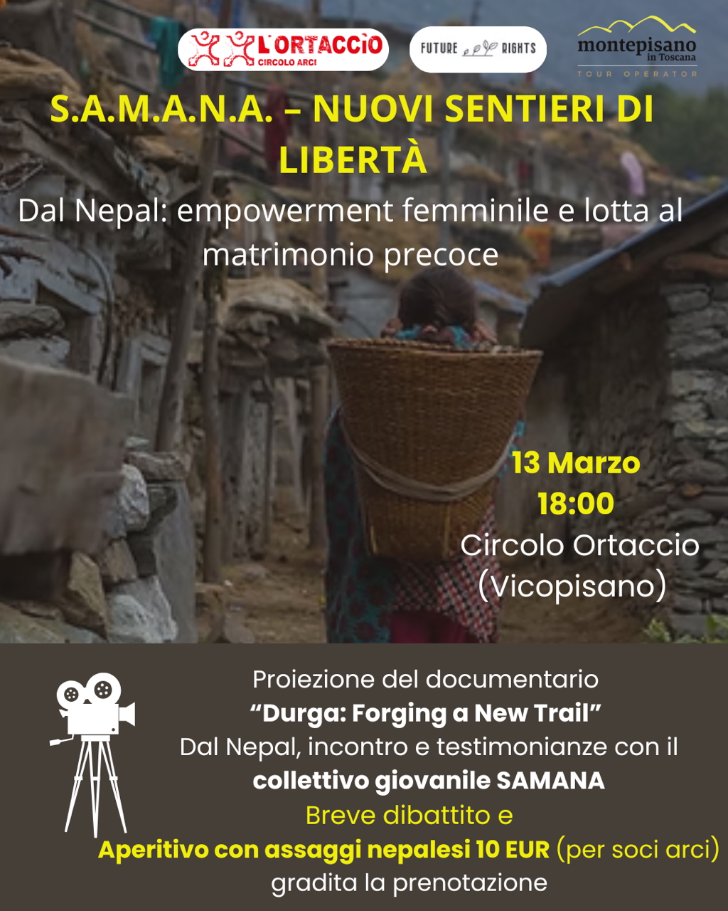 In programma la proiezione del mini-documentario “DURGA: Forging a New Trail”, seguita da un confronto e da un breve dibattito con Durga Rawal, in collegamento da remoto, e con due rappresentanti del collettivo giovanile SAMANA, attivo nelle aree rurali del Nepal contro il matrimonio precoce.