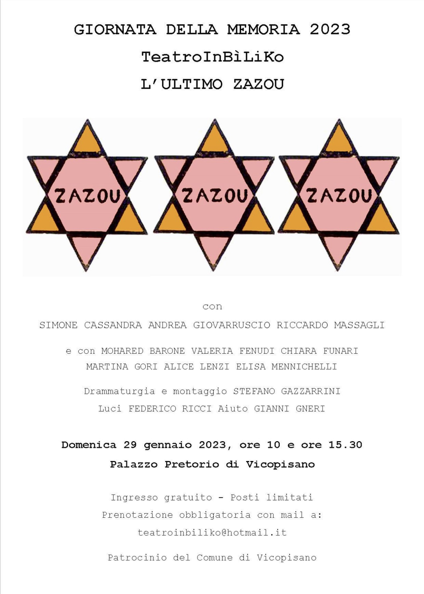 Spettacolo di Teatro Inbìliko, "L'ultimo Zazou", a Palazzo Pretorio, doppia replica alle 10:00 e alle 15:30.