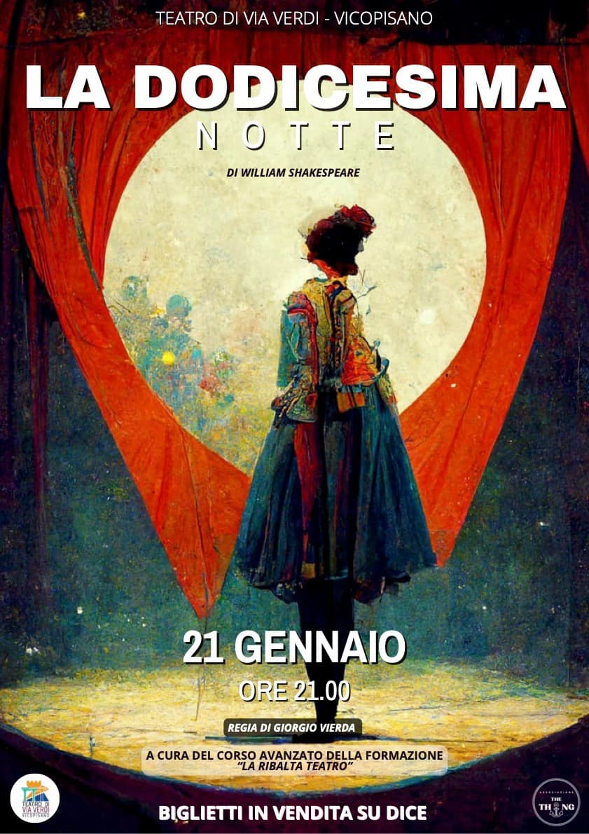 La Dodicesima Notte di William Shakespeare al Teatro di via Verdi, sabato 21 gennaio alle 21:00, a cura di Giorgio Vierda, aiuto regia Margherita Galli.