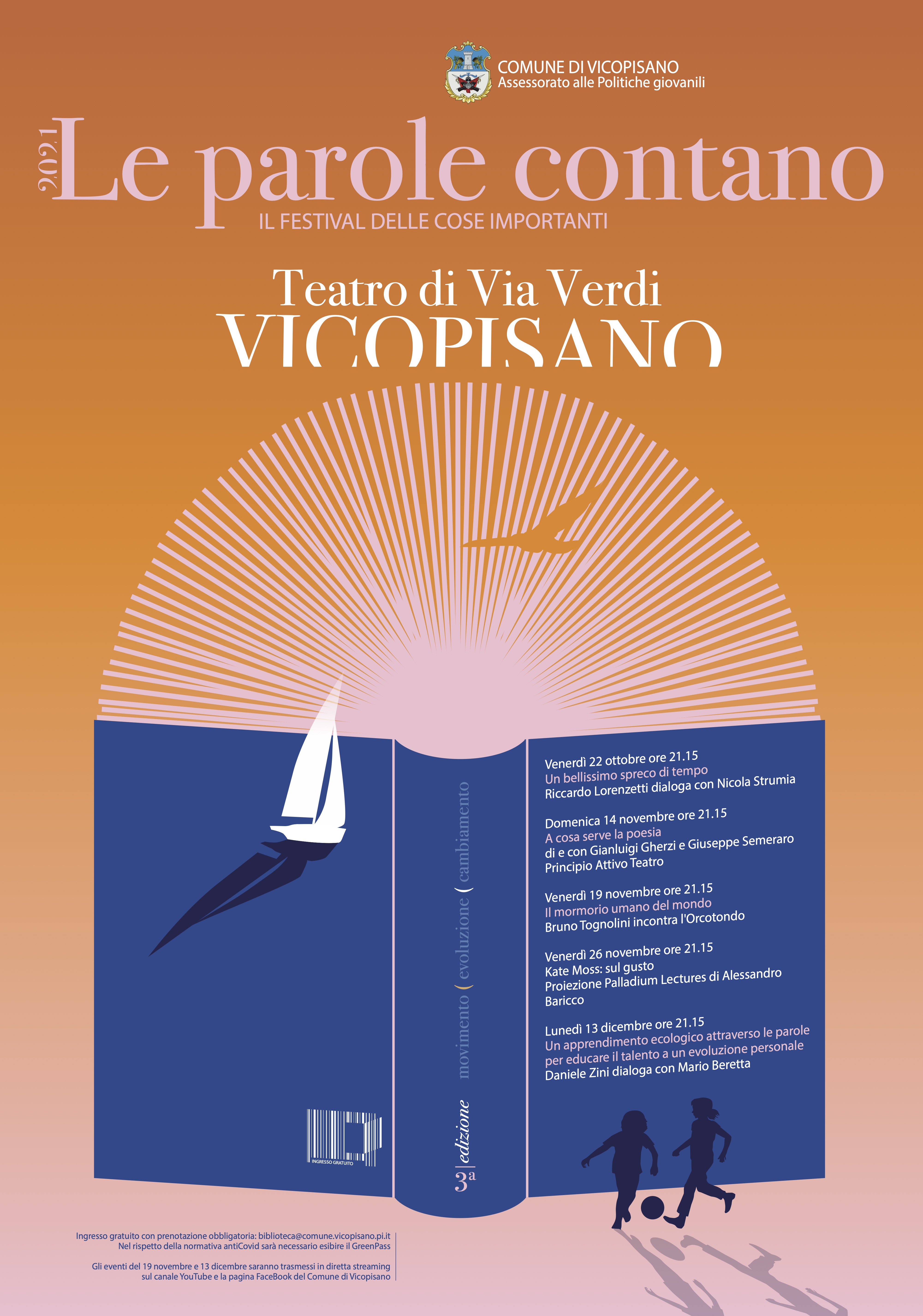 Primo appuntamento venerdì 22 ottobre, alle 21:15: Un Bellissimo Spreco di Tempo, Riccardo Lorenzetti dialoga con Nicola Strumia. Prenotazioni obbligatorie scrivendo a biblioteca@comune.vicopisano.pi.it.