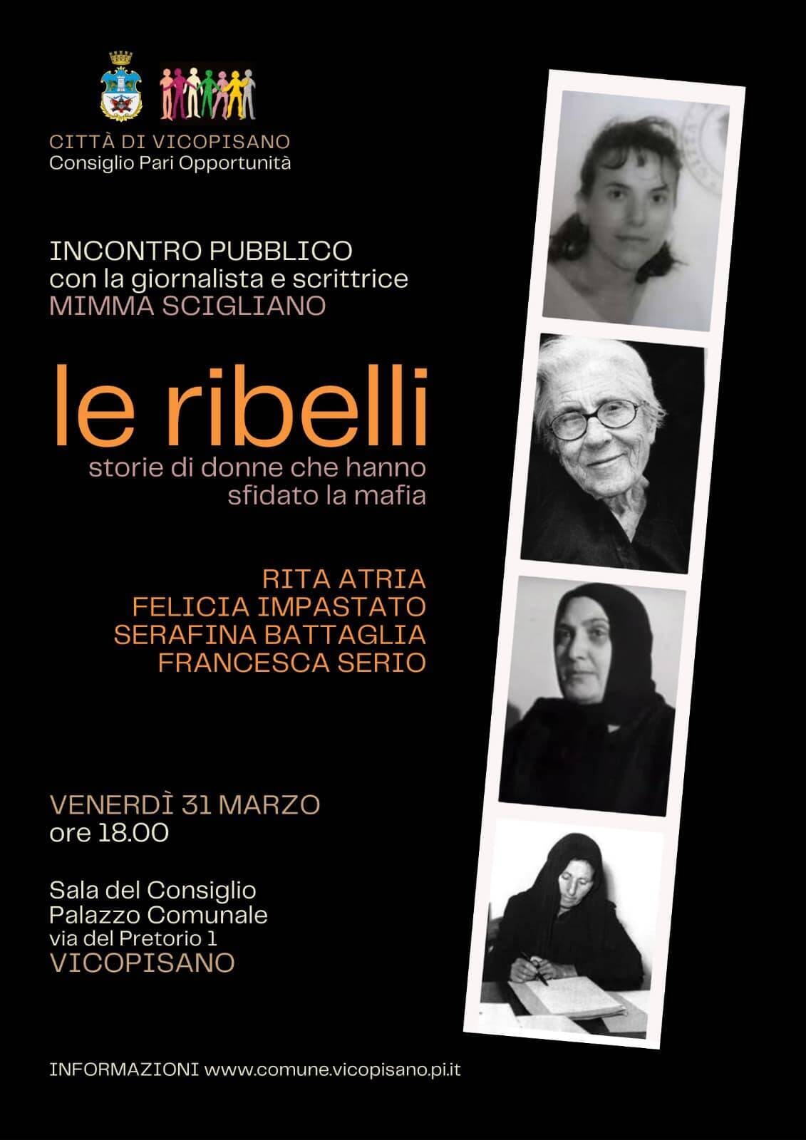 L’incontro pubblico, con ingresso libero e gratuito, è ispirato al ciclo radiofonico scritto e narrato da Mimma Scigliano e trasmesso nel 2019 da Rai Radio3 per la trasmissione “Vite che non sono la tua”.“Dalle lotte contadine a oggi _ dice Scigliano _ le donne in Sicilia sono state protagoniste di vere e proprie ribellioni contro la mafia.Le ribelli sono madri, mogli e figlie di uomini vittime di Cosa Nostra che hanno trasformato il dolore in energia per dire… basta.Alcune di loro hanno compiuto una rottura senza precedenti con famiglie mafiose, alterando la trasmissione della cultura e dei modelli sociali delle mafie, a loro affidati, per amore di figli e compagni.Le storie che il ciclo racconta sono la testimonianza di una realtà femminile che ha sfidato coraggiosamente un sistema, osando opporsi non solo all’organizzazione mafiosa, ma alla stessa cultura di cui la mafia si è sempre circondata.Uno spaccato di resistenza e resilienza femminile che attraversa cinquant’anni di storia.Si narrano, infatti, le vicende di: Francesca Serio, Serafina Battaglia, Felicia Bartolotta Impastato e Rita Atria.Alcune di loro hanno ottenuto giustizia, altre sono morte senza ottenerla, sole e, per anni, dimenticate.Ma sui loro passi hanno camminato tante altre donne, che oggi continuano a denunciare e a fare lotte coraggiose contro la magia.
