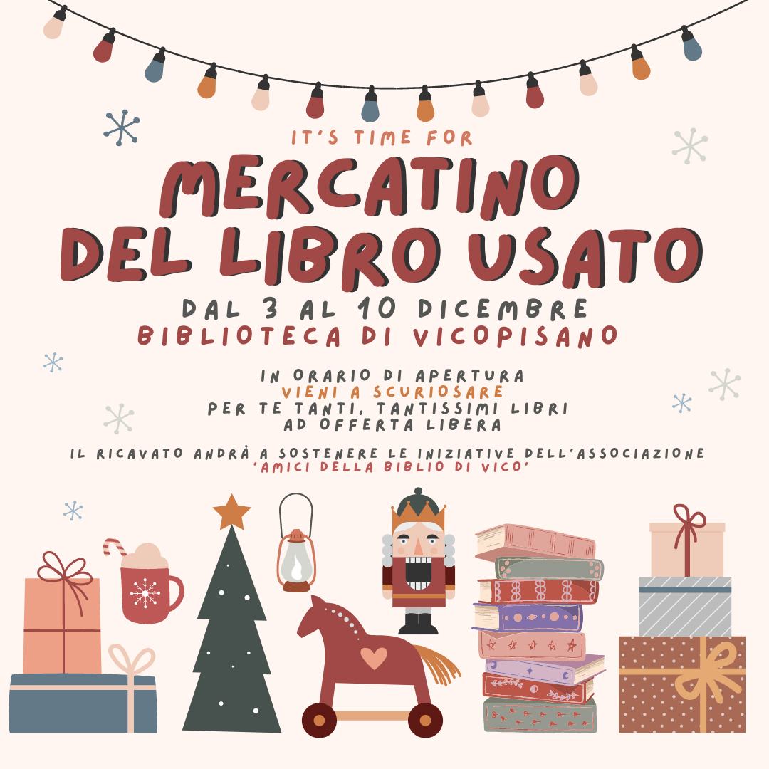 Venite a curiosare, in orario di apertura, tra i libri del Mercatino di Natale della Biblio. Troverete il titolo che vi conquisterà e contribuirete alle attività dell'associazione "Amici della Biblio di Vico" a cui sarà devoluto tutto il ricavato.