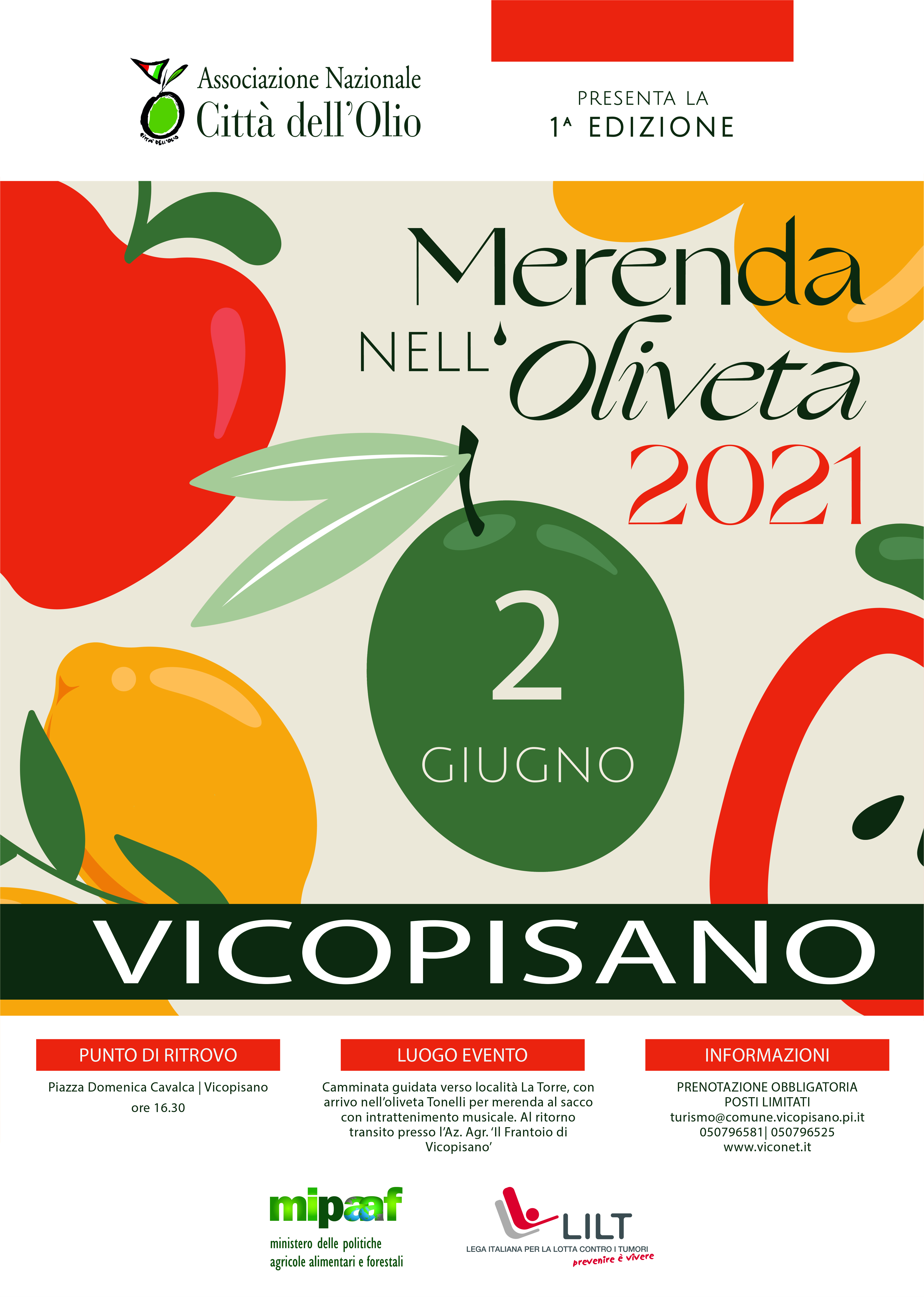 Importante: la partecipazione è gratuita, i posti sono limitati e contingentati e la prenotazione è obbligatoria ai seguenti recapiti: 050/796581, turismo@comune.vicopisano.pi.it.