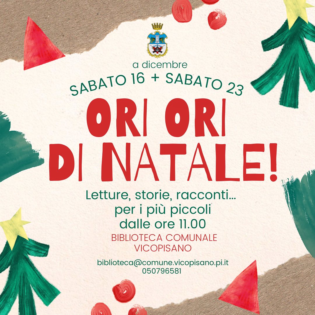 Ori Ori di Natale... tornano le letture, le storie e i racconti per i più piccoli in Biblioteca, sabato 16 e sabato 23 dicembre, alle 11:00.