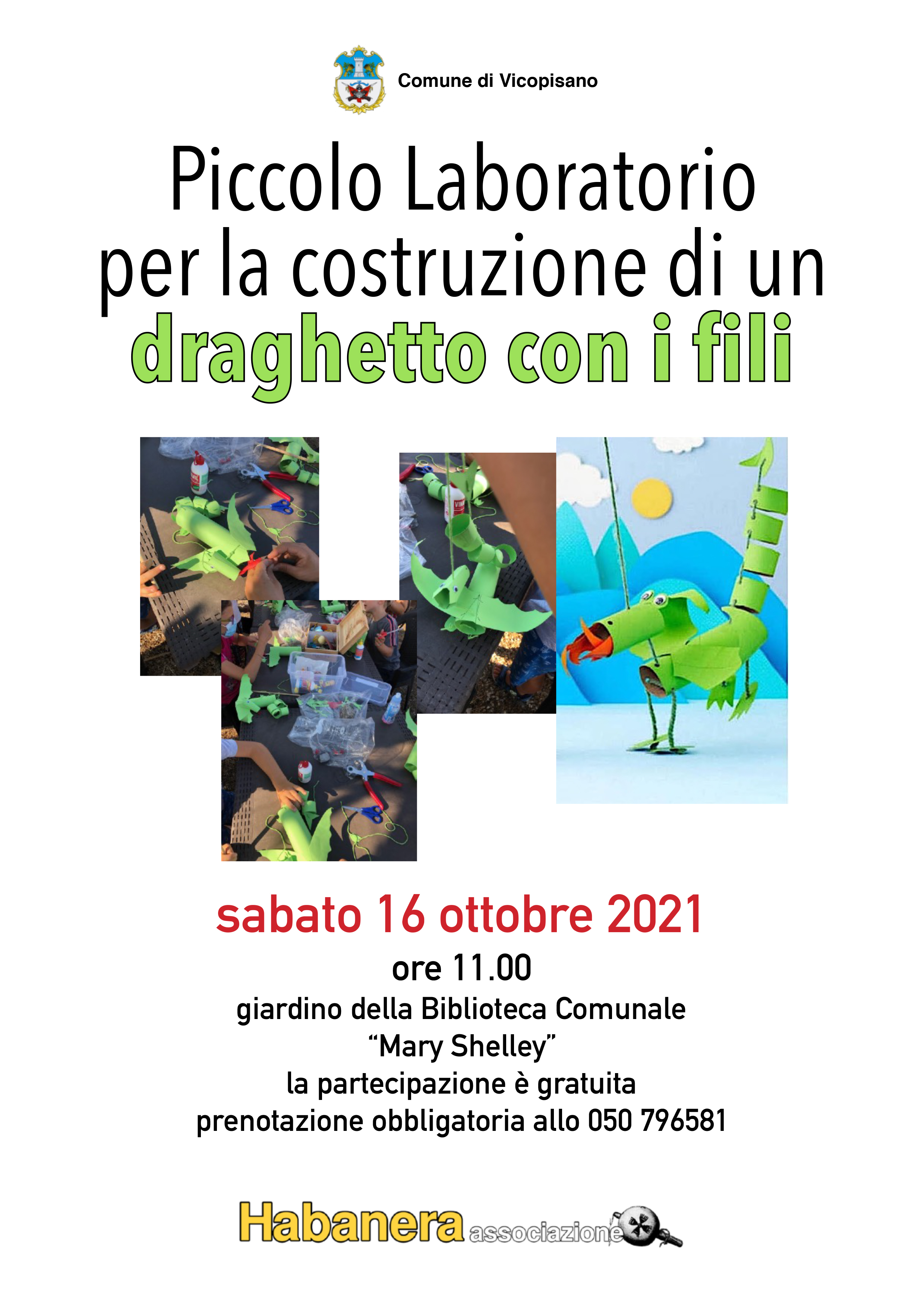 Piccolo laboratorio per la costruzione di un draghetto con i fili, a cura di Habanera associazione, nel Giardino Shelley della Biblioteca Peppino Impastato Vicopisano, sabato 16 ottobre alle 11:00.