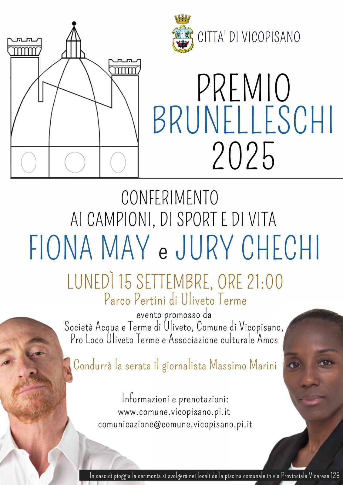Una serata di stelle dello sport… sotto le stelle e consegna del Premio Brunelleschi alla regina del salto in lungo, Fiona May e al 'Signore degli Anelli' Jury Chechi, nel Parco Pertini a Uliveto Terme.
