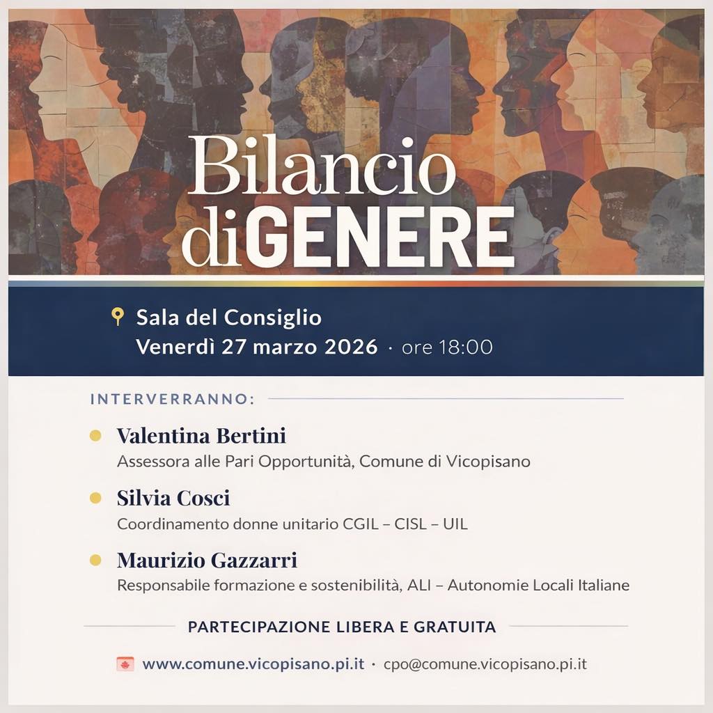 Venerdì 27 marzo 2026, alle 18:00, nella Sala del Consiglio, sarà presentato il Bilancio di Genere del Comune. L’appuntamento, inserito nel programma del Marzo di Donna, la rassegna organizzata dal Consiglio per le pari opportunità, è aperto alla cittadinanza, con ingresso gratuito.
