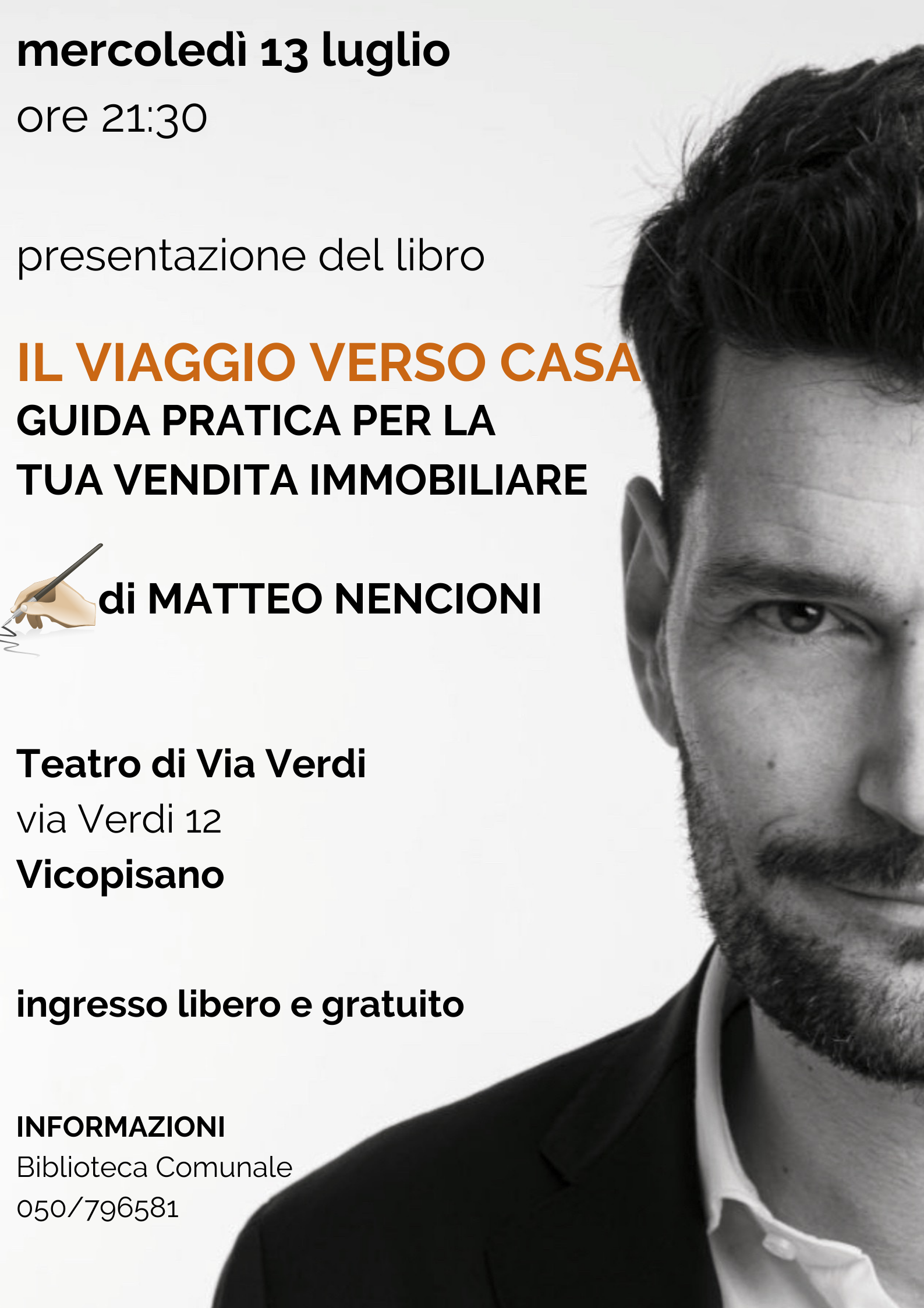 Presentazione del libro "Il viaggio verso casa - guida pratica per la tua compravendita immobiliare", 13 luglio alle ore 21:30 al Teatro di Via Verdi di Vicopisano.