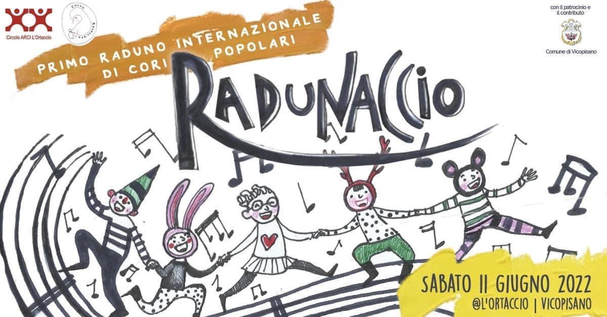 Otto cori provenienti da tutta Italia (e anche da fuori) porteranno il loro contributo di musica polifonica, di tradizione orale, al Radunaccio: Or’Coro (Vicopisano), Kantiere/Gruppo Cantanti Lavoratori (Vicopisano), Voci di Mezzo (Milano), Coro Sgarbatello Impertinente Cicognolo (Roma), Der KMC (Berlino), Piccolo Coro Frou Frou (Palaia), Ribelli in Cor (Firenze) e Voci per Aria (San Quirico in Collina).