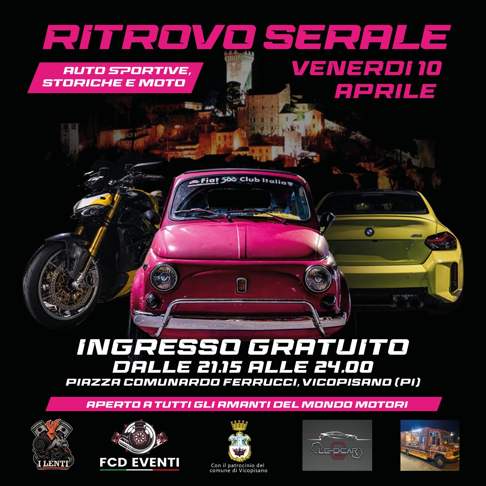 Venerdì 10 aprile, alle 21:15, in Piazza Comunardo Ferrucci, si terrà un raduno, aperto a tutti gli amanti dei motori, di auto sportive, serate storiche e moto.