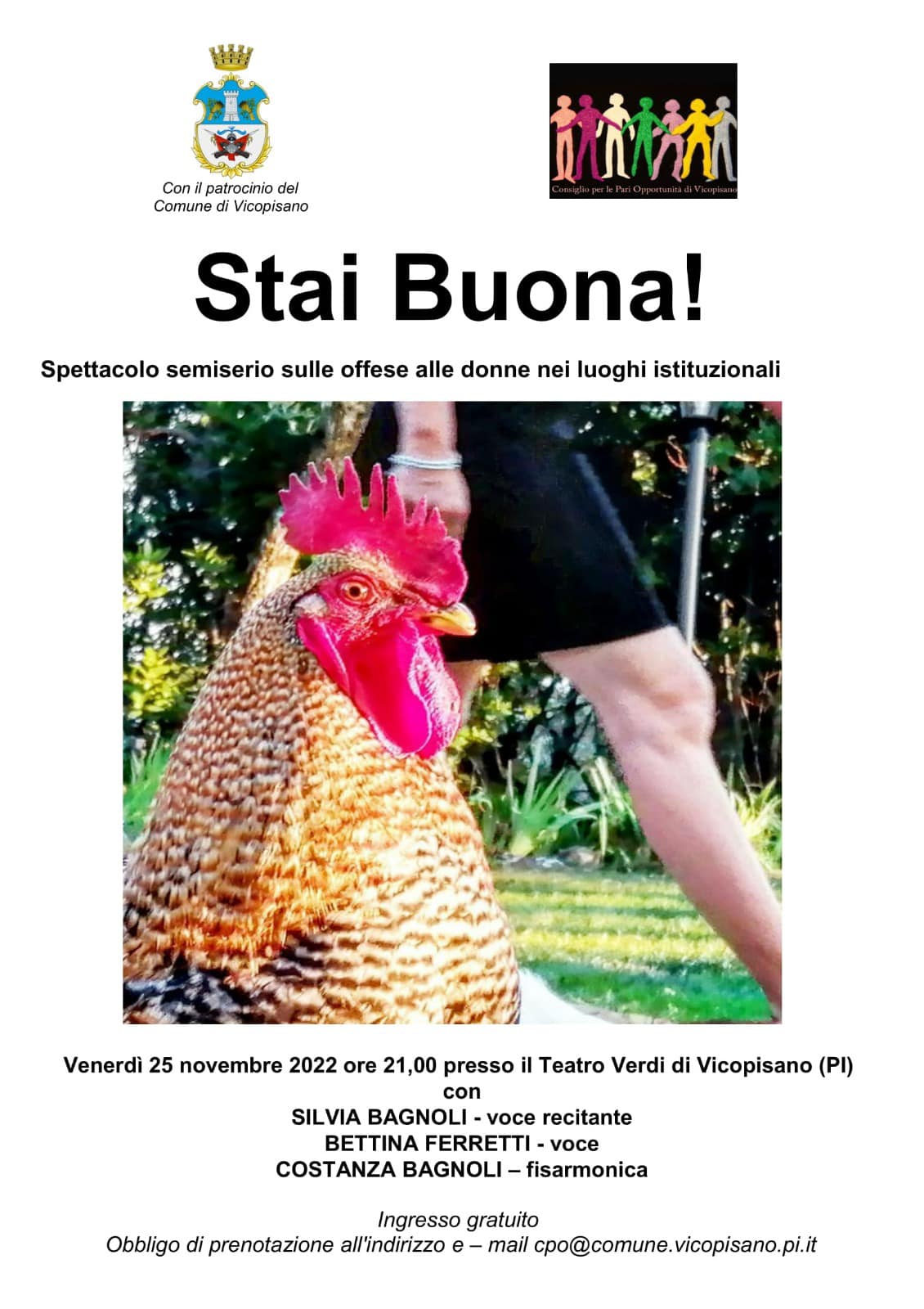 Ingresso gratuito e obbligo di prenotazione scrivendo a cpo@comune.vicopisano.pi.it